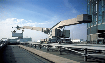 Building Maintenance Units are required on the more complicated building designs, and provide a sophisticated façade access solution. They are usually mounted permanently at roof level, and provide full lateral, horizontal and vertical movement of the working platform, in order to access all surfaces of a building. The system is designed for scheduled façade maintenance e.g. window washing & external cleaning, and unscheduled maintenance e.g. replacement of glass/façade panels and other repairs.
